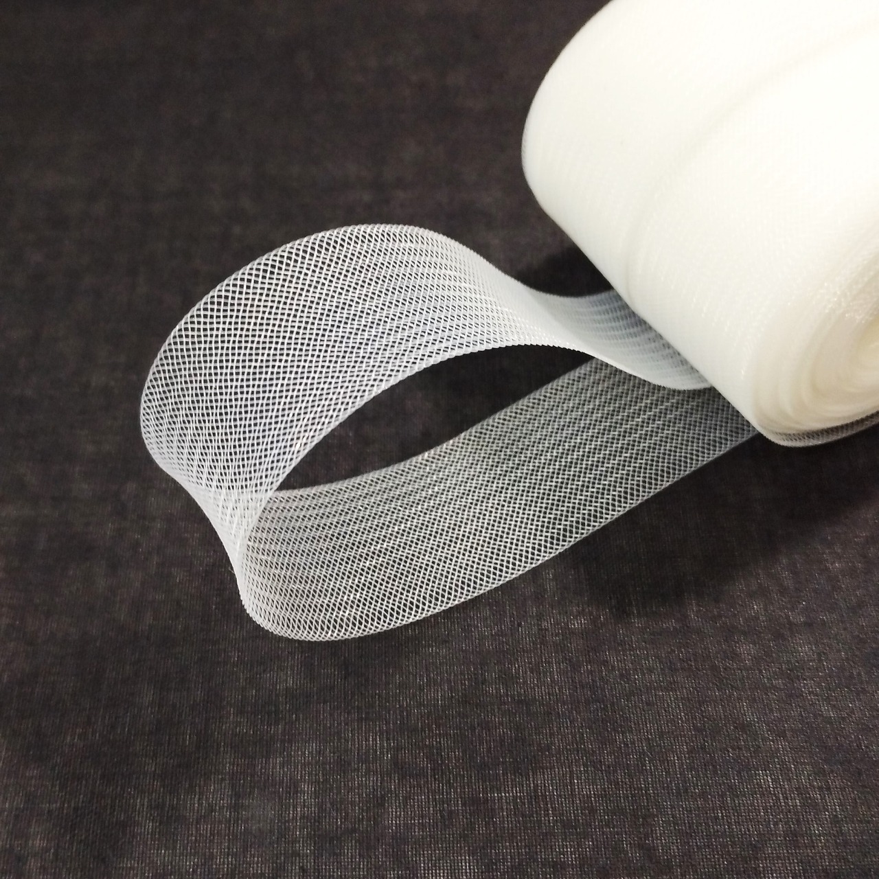 一般的には社交ダンスのドレスの裾などのボリュームを出すために使いますが(広巾)、軽く張りがあるので、ヘッドドレスやコサージュ作りにも最適です。細巾はブレードの様にも使えます。