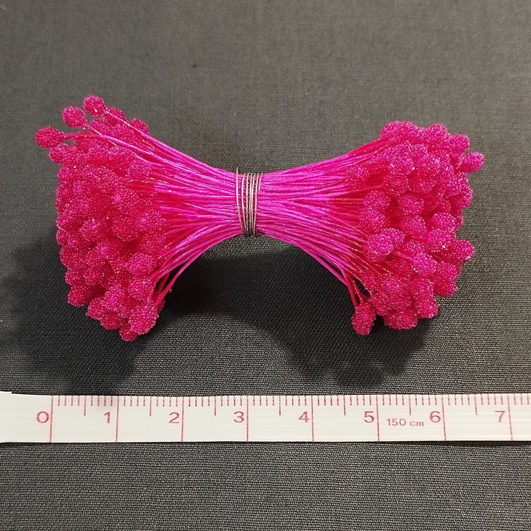 両端に粒がついており二つ折りにしてフローラテープで巻き花芯を作ります。